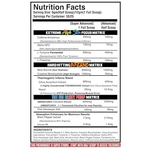 ✔️12 Super Concentrated Ingredients: the big daddy inferno preworkout helps to build massive muscles strength and stamina by providing 12gm of 12 ingredients blend per serving make this preworkout a true monster of energy and performance. you can see just after 1 serving of usage of this product.