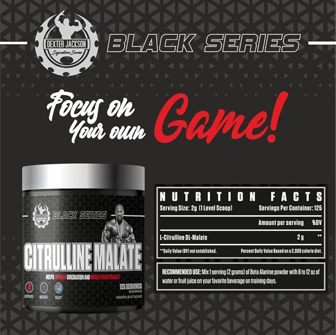 Dexter Jackson Black Series Citrulline Malate | 125 Servings, 250g – Premium Nitric Oxide Support for Improved Blood Flow and Workout Performance