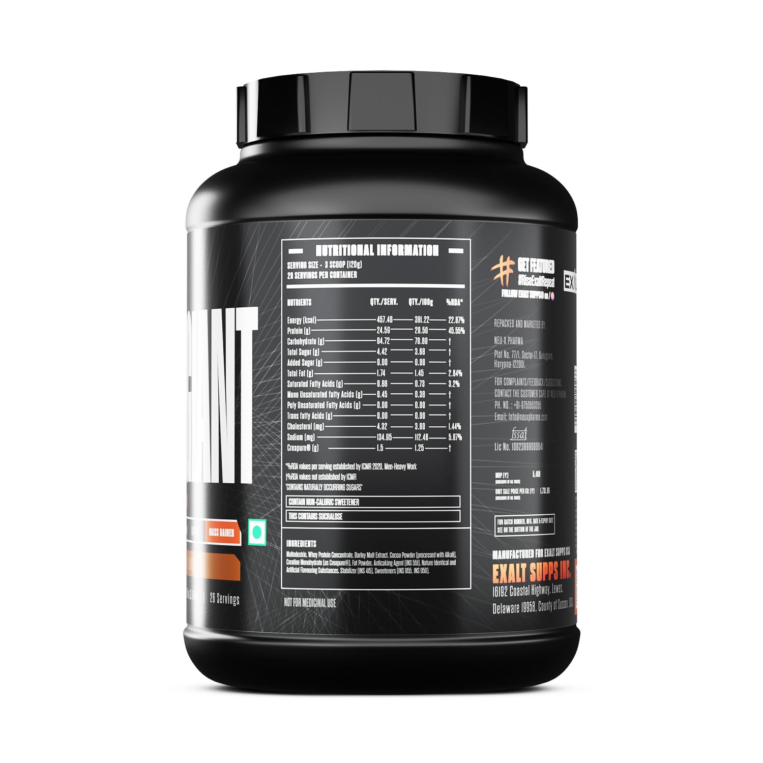 Exalt Supps The TrueGaint Mass Gainer | Chocolate | 3.17 Kg | 26 Servings