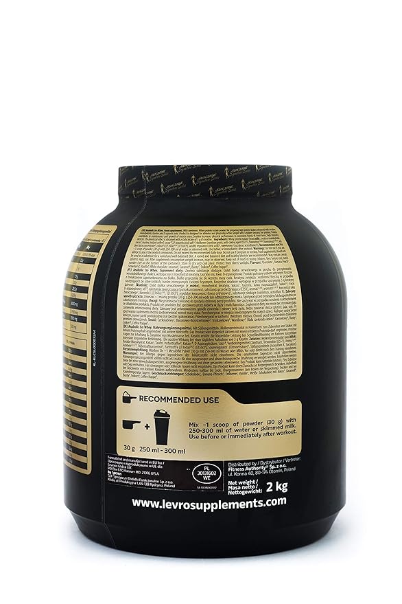 The dietary supplement LEVRONE ANABOLIC ISO WHEY is a convenient source of complete protein, which was prepared in the form of an easily soluble powder. The product allows you to prepare a high-protein drink containing fast-absorbing whey isolate (WPI). The protein used in the nutrient is characterized by a high content of amino acids, including, among others, the exogenous BCAA complex. The composition of the product has been enriched with the addition of creatine monohydrate, taurine and D-aspartic acid (DAA).