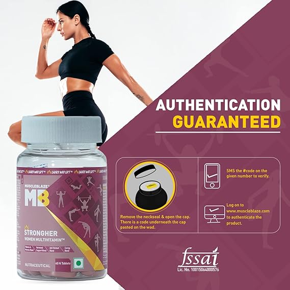 Considering that women have different needs, meeting your nutritional requirements can be difficult. Particularly if you are trying to up your workout intensity, there is no space for dietary gaps or days when you give in. What you require is an extra boost from a specially formulated supplement made to level up your game. MuscleBlaze StrongHer Women Multivitamin has been formulated to help women aid their endeavour for a fit and active lifestyle. This supplement will take your prowess a notch above the regular.