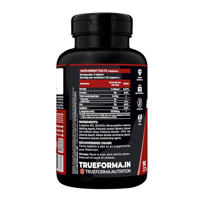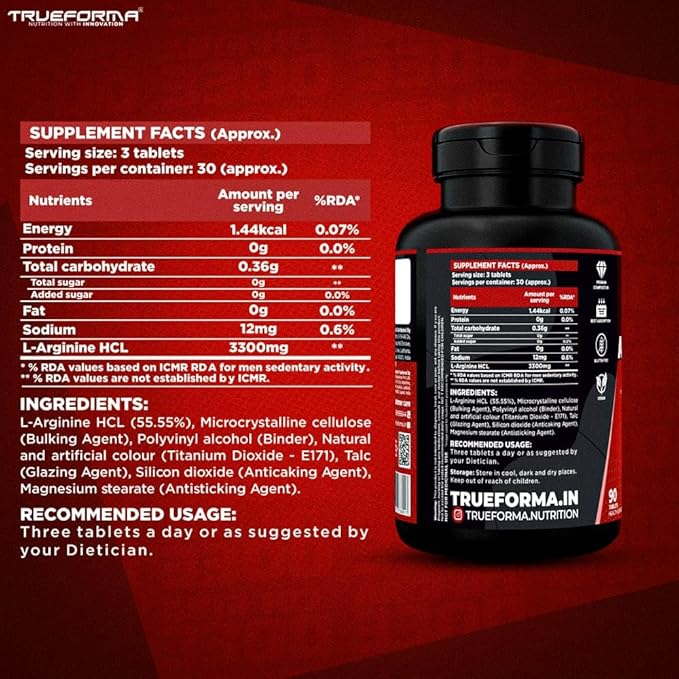 Powerful L-Arginine HCL Formula (3300 mg) – Each 3-tablet serving delivers 3300 mg of premium L-Arginine HCL to help stimulate nitric oxide production and support healthy blood circulation.